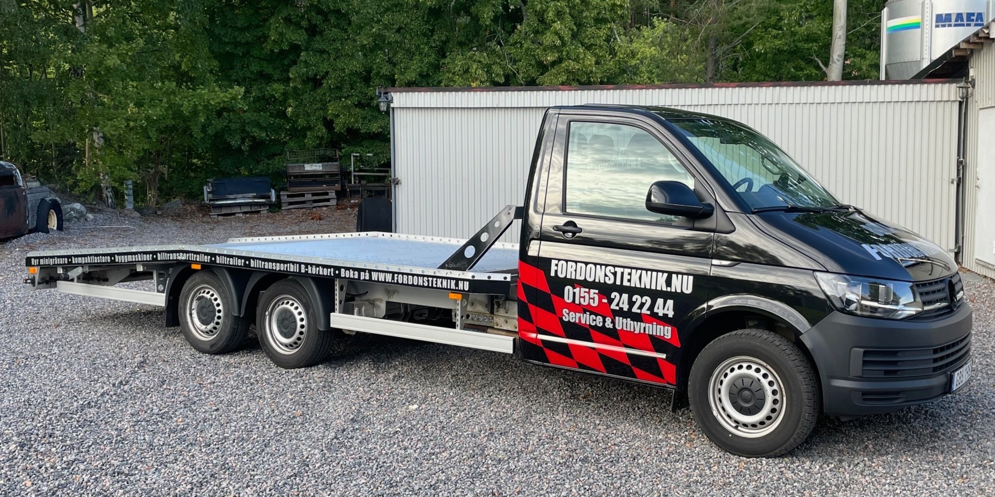 Hyrestagaren ansvarar själv för avlastning och pålastning samt surrning av maskin på flak.