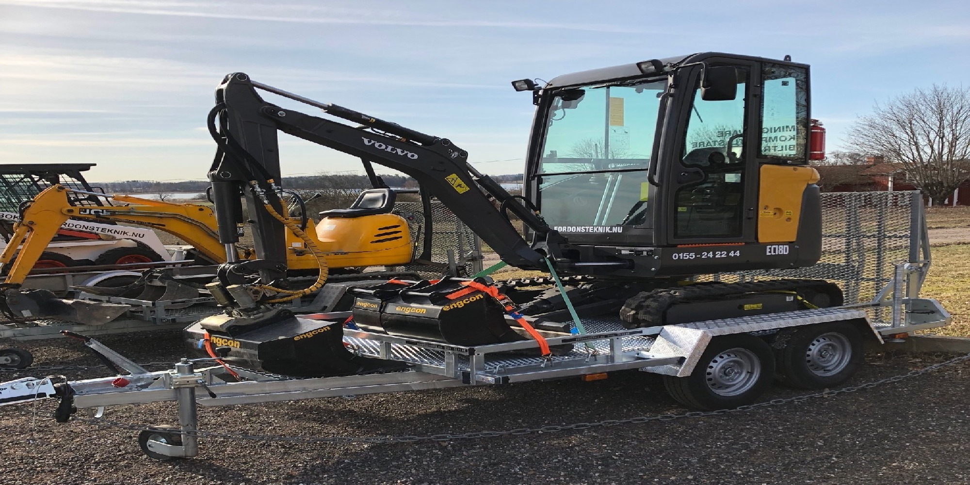 Kompakt minigrävare 1100 kg inkl släpkärra med totalvikt 1400kg som kan dras på b-körkort. reg nr BHR 067