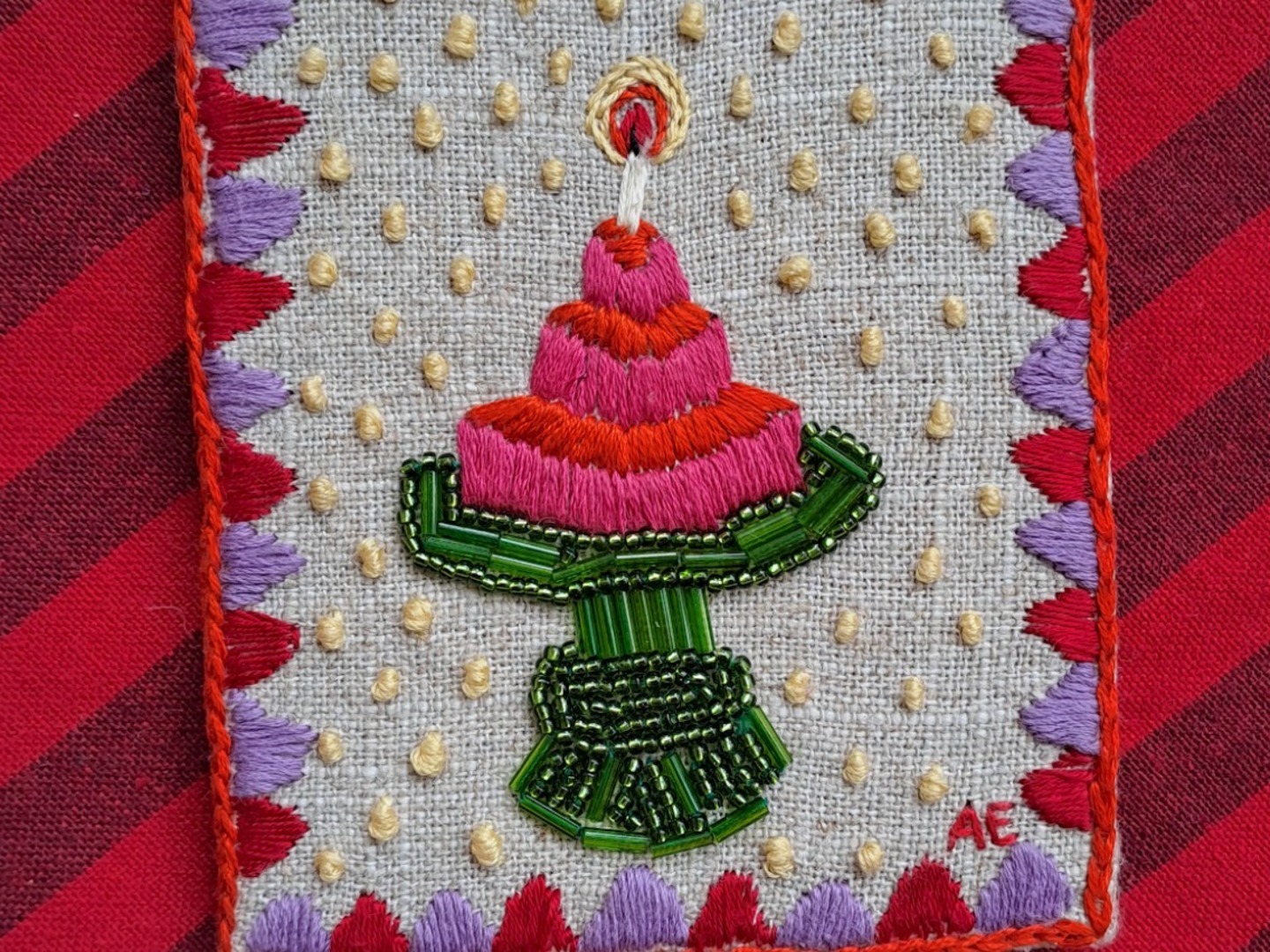 fritt broderi med jultema och hämtar inspiration från klassiska motiv med Alexandra Ehrenkrona