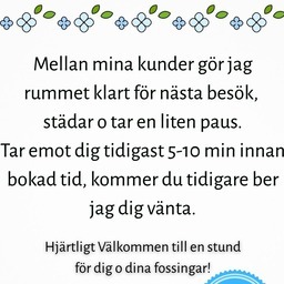 Fotvård / Spa-pedikyr i mysig miljö. Jag brinner för att du ska kunna koppla av vardagen medan jag pysslar om dina fötter. Vi är alla unika och så klart även våra fötter. Har du fotfobi eller är kittlig så har du hittat rätt. Detta är något jag jobbar mycket med. Om du har möjlighet så går det utmärkt att använda friskvårdspengen. UTFÖR INTE NÅGON MEDICINSK FOTVÅRD så som behandling av vårtor, nagelsvamp m.m. LÄNGST NER TILL VÄNSTER PÅ REDSKAPSV.7 hittar du mig! I samma lokal som XCamp. Betalning med SWISH Hjärtligt Välkommen Monica Diplomerad inom Fotvård / Spa-pedikyr